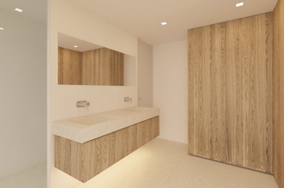 Im Obergeschoss gibt es zwei weitere Schlafzimmer, die sich ein gemeinsames Badezimmer teilen. Eines der Zimmer öffnet sich zu einer großen privaten Terrasse von ca. 60 m² – ideal zum entspannten Verweilen in privater Atmosphäre.