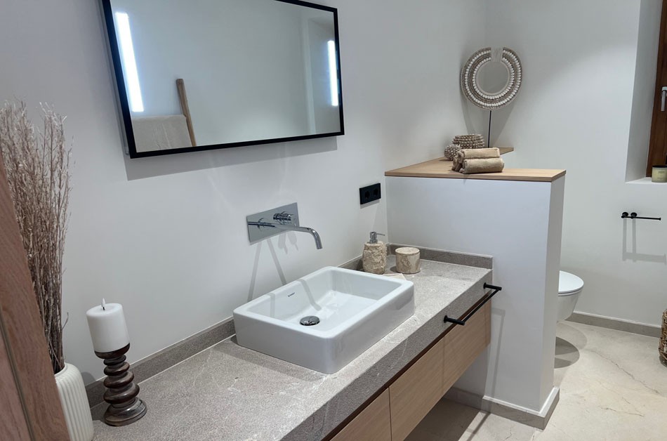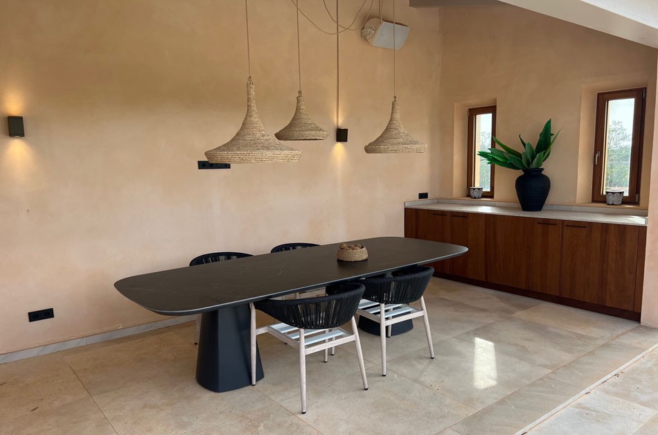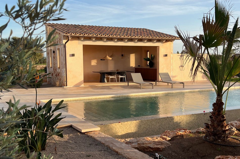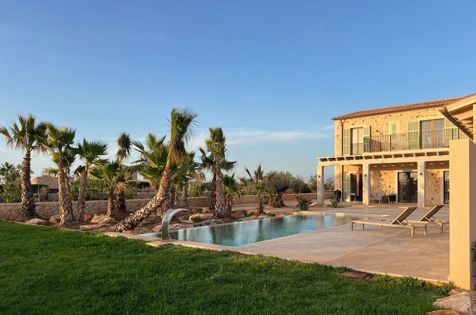 Das Bauprojekt umfasst einen repräsentativen Finca-Neubau mit Natursteinfassade und ca. 300 m² Wohn- und Nutzfläche. Dazu kommen ca. 50 m² für das Gästehaus, ein Poolhaus von 24 m², eine Porche mit 24 m² sowie eine ca. 122 m² große Poolterrasse.