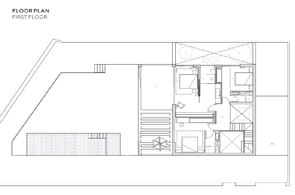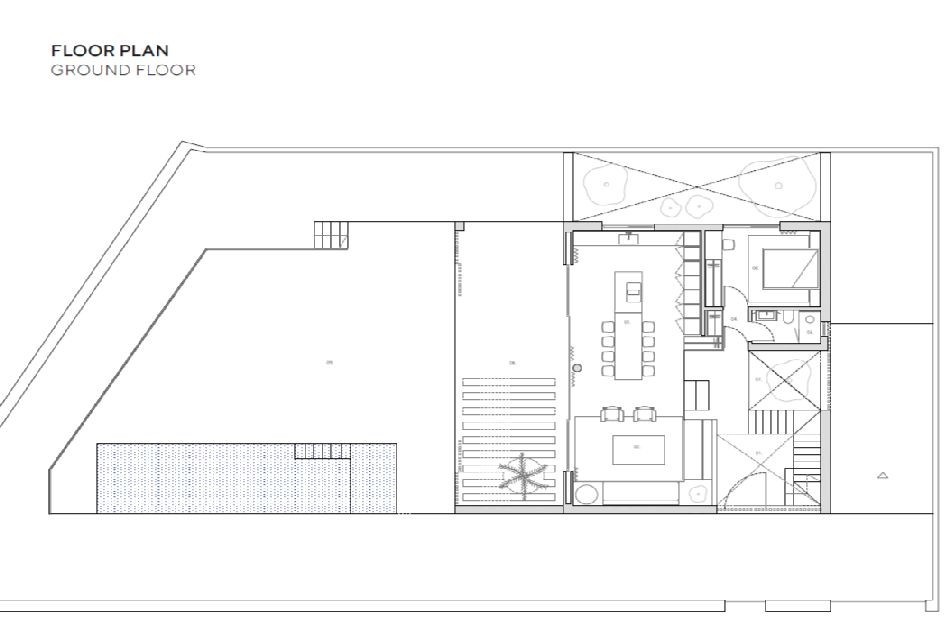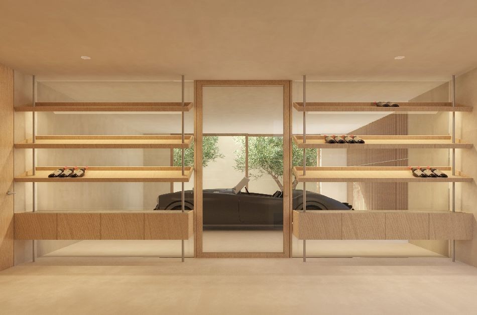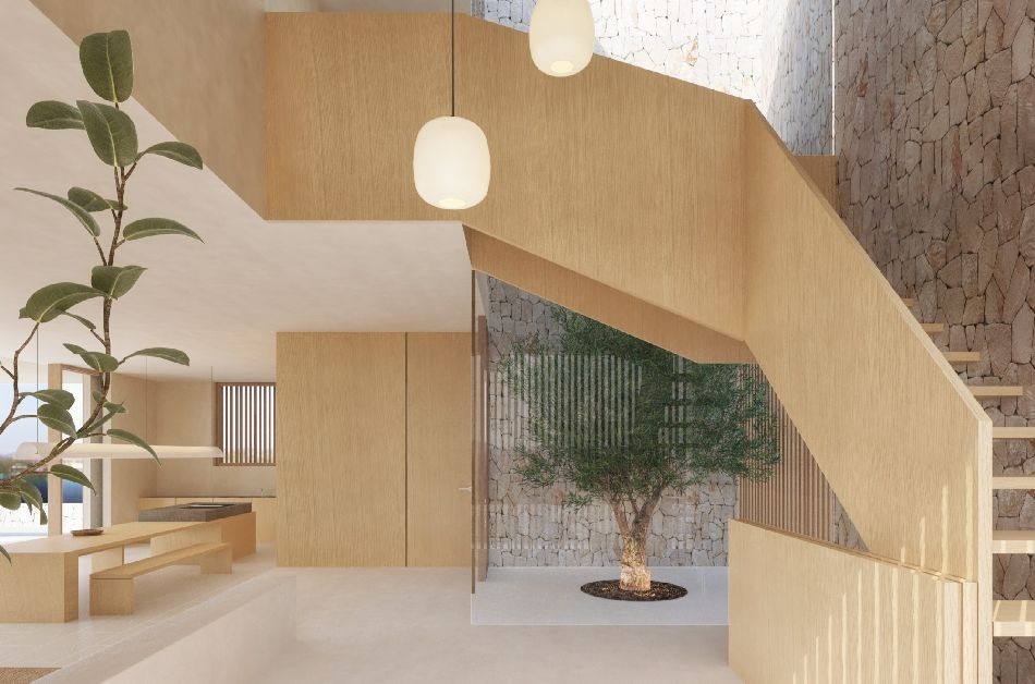 Vorgesehen sind ca. 110 m² im Erdgeschoss, 102 m² im Obergeschoss und ein Kellergeschoss von rund 117 m². Moderne Linien treffen auf traditionelle Materialien wie Kalkmörtel, Naturstein und Eichenholz. Großzügige Glasflächen schaffen Transparenz und Licht, ein Atrium mit Olivenbaum setzt markante architektonische Akzente.