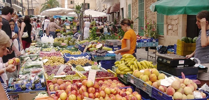 Wenn Sie früh morgens kommen, haben Sie die Möglichkeit, in einem der gemütlichen Cafés des Ortes noch ein typisch mallorquinisches Frühstück zu sich nehmen, bevor Sie in die bunte Marktatmosphäre Santanyís eintauchen.