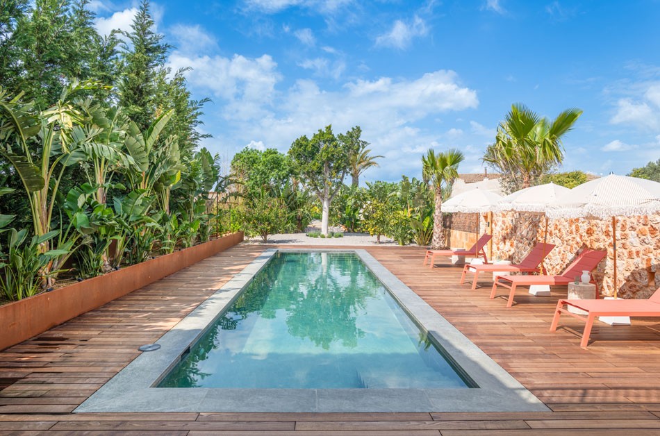 The bay of Cala Llombards with its small sandy beach and two other idyllic bays are just a few minutes away. The extensive natural beach of Es Trenc can also be reached within 10 minutes by car. The beautiful town of Santanyí with its famous weekly market is in the immediate vicinity.