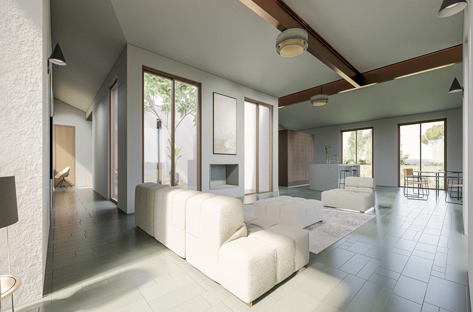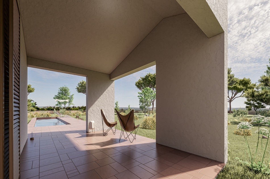 Outside, a private pool of approx. 34 m² provides refreshing moments on hot summer days. The project is completed by a generous garage of approx. 79 m², offering space for two cars.