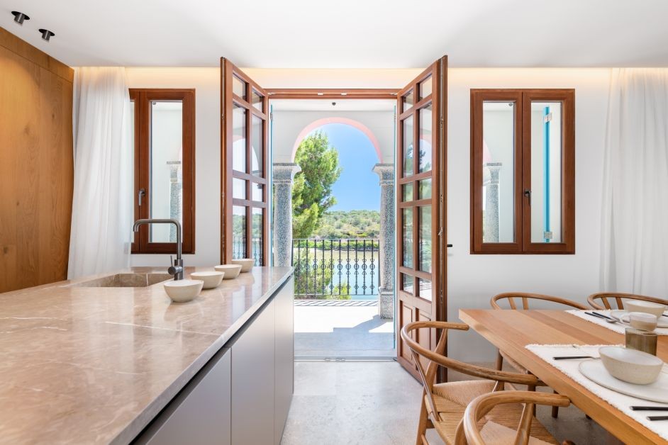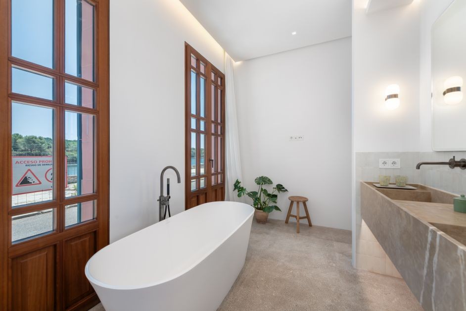 Just a 20-minute drive away lies the vibrant artists‘ village of Santanyí – a popular spot for those with a taste for creativity and quality. Its colourful weekly market, upscale boutiques, and fine dining establishments make it a favourite for stylish island dwellers and visitors alike. Beach lovers will also find their haven in Porto Colom: the idyllic S’Arenal beach, located on the Sa Punta peninsula, impresses with soft sand, turquoise waters, and the renowned Blue Bar – the perfect setting for relaxing by the sea. For those seeking complete tranquillity, the hidden cove of S’Algar offers a peaceful retreat surrounded by dramatic cliffs and untouched nature.