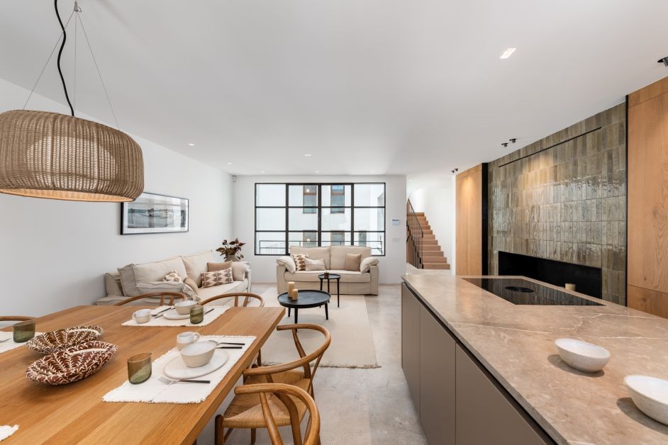 Behind the charming facade, a light-filled interior opens up, immediately creating a sense of home. The open-plan living and dining area, with high ceilings, an elegant fireplace, and large windows, creates a spacious, relaxed atmosphere, perfect for enjoying the Mediterranean way of life. The fully equipped, seamlessly integrated kitchen invites you to share culinary moments with family and friends.