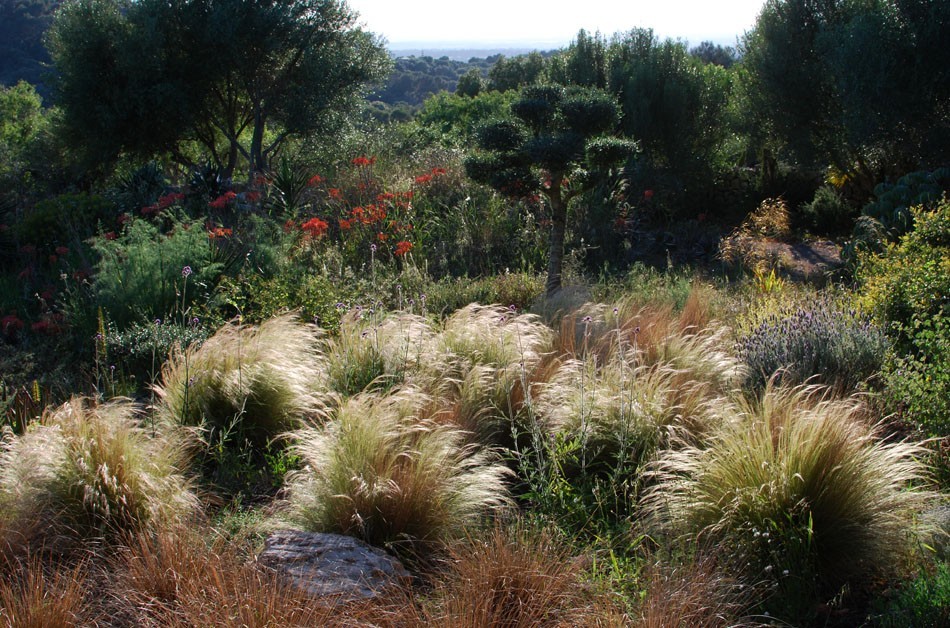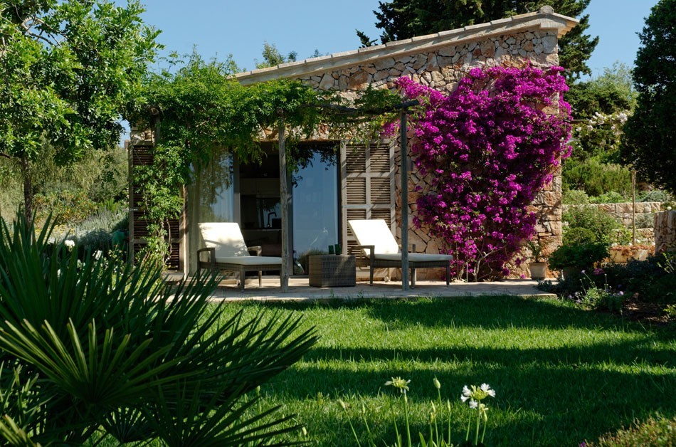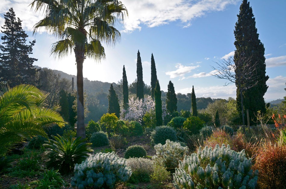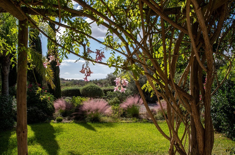 The idyllic plot with palm trees, old cypresses and a citrus grove has been carefully extended with a Mediterranean garden, which emphasizes the natural atmosphere. An electric gate opens into this peaceful oasis.