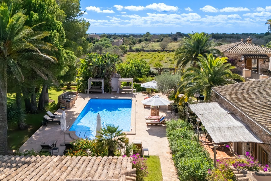 The location combines secluded tranquility with good accessibility: the beach of Cala Marçal near Porto Colom is only a few minutes away, Cala d’Or with marina and restaurants about 7 minutes by car. The Vall d’Or golf course is just 3 km away. At the same time, the region offers a wide range of activities from sailing and surfing to biking and hiking.