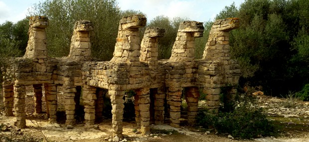 Eine bedeutende Persönlichkeit der mallorquinischen Kunstszene ist sicherlich der Bildhauer Rolf Schaffner. Auch wenn einem der Name nicht unbedingt geläufig ist, so haben doch schon viele einige seiner Kunstwerke gesehen. Schaffner (1927-2008) lebte und wirkte hauptsächlich in der Gemeinde Santanyí. So stehen auch hier einige seiner imposanten Werke. Beispielsweise die beiden Statuen Rey y Reina, die aus einem sechs Meter Koloss und einem 4,50 großen Kunstwerk am Kreisverkehr Santanyí-Llombards einen König und eine Königin darstellen sollen. Nicht zu vergessen die mächtigen Kalksandstein-Figuren, die einem zwischen den Grünanlagen bei Son Danus an der Straße zwischen Campos und Santanyí in Auge fallen. Oder wer kennt nicht die eindrucksvolle Fassade der Kirche des Ortes Cala Figuera. Und etwas versteckt stehen am Kreisverkehr nach Cala Llombards die knapp 7 Meter hohen „Caballos). Eine Steinskulptur aus sechs Pferden. Obwohl der Künstler, wie kein anderer, der Gemeinde Santaní seinen unverwechselbaren Stempel aufgedrückt hat, hatte Schaffner nicht viel im Sinn mit dem Trubel des örtlichen Kunstmarkts. Viel wichtiger war für ihn eine freie Entfaltung. Und entfalten konnte er sich auf der Insel. Sein Atelier, das auch gleichzeitig sein Ausstellungsraum war, befand sich unter freiem Himmel und ebenso in der Finca Son Danus. Noch heute kann man hier ein eindrucksvolles Skulpturen-Ensemble vorfinden. Zu Ehren des deutschen Bildhauers und seinen Werken widmet die Gemeinde Santanyí dem Künstler einen eigenen Ausstellungsraum im örtlichen Kulturzentrum Ses Cases Noves. Hier, im Rahmen der Dauerausstellung mit dem Namen „Rolf Schaffner – Collecció Nora Braun“, kann man 15 Skulpturen aus Stein und Bronze bestaunen. Rolf Schaffner wurde 1927 im Südschwarzwald geboren. Von 1956 bis 1962 studierte er Kunst an der Akademie der Bildenden Künste in München. Hier erhielt er im Rahmen eines Künstler-Wettbewerbes des Nationalen Olympischen Komitees in Deutschland den 3. Preis für seine überdimensionierte Betonskulptur »Athlet«. Doch sein wahres Zuhause fand er in der Stadt Santanyí. Die wohl bedeutendste Arbeit Rolf Schaffners ist aber das Projekt „Equilibrio“ oder auch Equilibrium (Gleichgewicht). Das länderübergreifende, 1995 entstandene, Werk am Fußweg in Richtig Es Pontás, ist der südlichste Teil eines Gesamtwerkes, das aus insgesamt fünf Stelen besteht. Diese meterhohen Kunstwerke bilden ein Kreuz das ganz Europa verbindet. Die anderen Objekte befinden sich in Trontheim (Norwegen), Bensberg bei Köln, Cork (Irland) sowie Wolgograd (Russland). Schaffner verstand dieses Werk als Symbol des Friedens und der Demokratie sowie eines verantwortungsvollen und bewussten Umgangs mit der Natur.